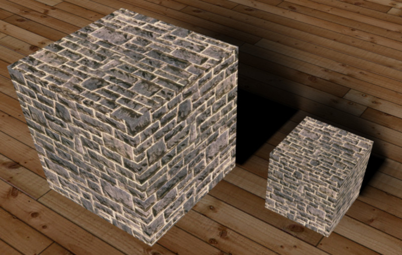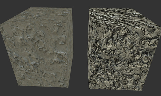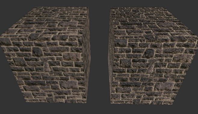 左边材质的是普通的纹理贴图,右边的材质是带有凹凸纹理的,当前bumpScale设置的是2,两者看上去有比较明显的不同